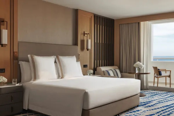In spacious ocean deluxe rooms with bath and separate shower, mini bar, safe and seating area.
