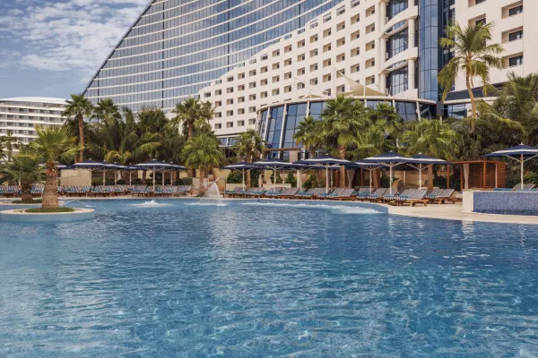 The architecturally impressive Jumeirah Beach, designed to mirror the shape of a breaking wave, sits beside the white sands and warm sea of the Arabian Gulf. This fantastic family resort, which sets the standard for luxury accommodation and leisure facilities in Dubai, offers a relaxed holiday ambience and has become a firm favourite with its predominantly European clientele. With up to 30 restaurants and bars across the Jumeirah beach stretch, spectacular ocean view rooms and an impressive spa, all guests can also enjoy complimentary unlimited access to Wild Wadi Water Park.